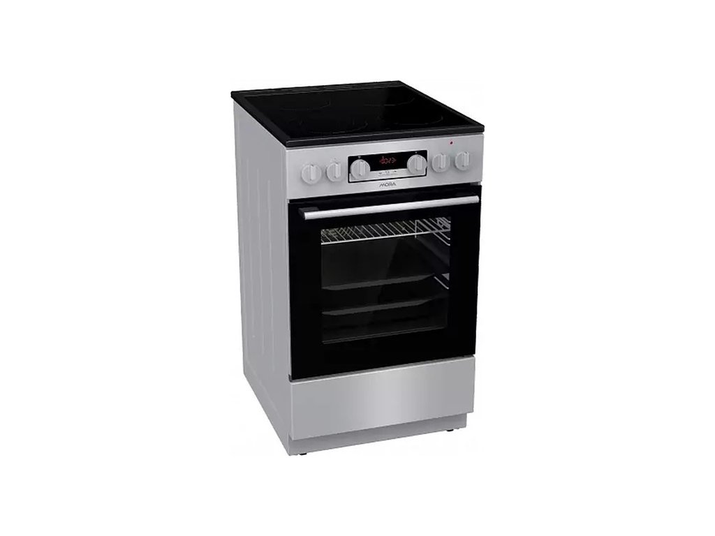 Energetická třída A, rozměry VxŠxH v mm (850x500x594), hmotnost 40,4 kg, max. příkon 9100 W, sklokeramická deska, 4 plotýnky, 11 funkcí trouby, barva nerez, objem trouby 70 l