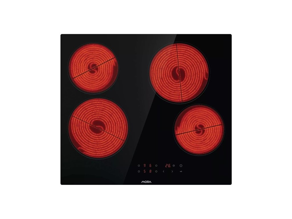 Sklokeramická vestavná varná deska/dotykové ovládání/broušené hrany/4 Hi–Light varné zóny ( 2x 200 mm 1,8 kW, 2x 165 mm 1,2 kW)/plynulá regulace výkonu/signalizace funkce/funkce Timer/funkcia KeyLock