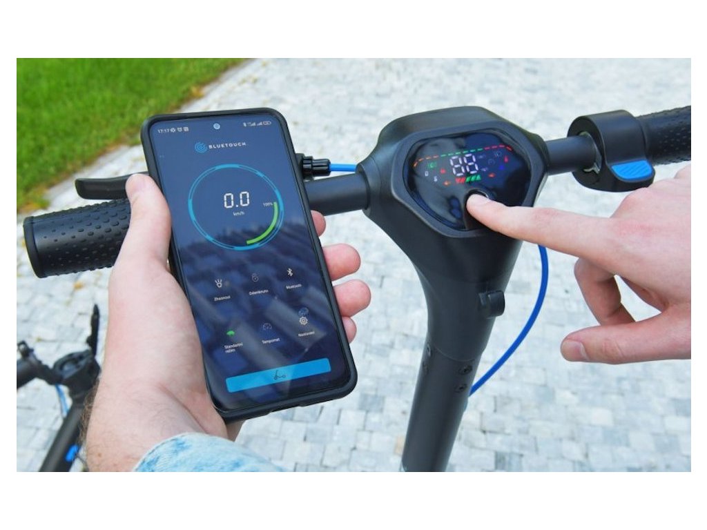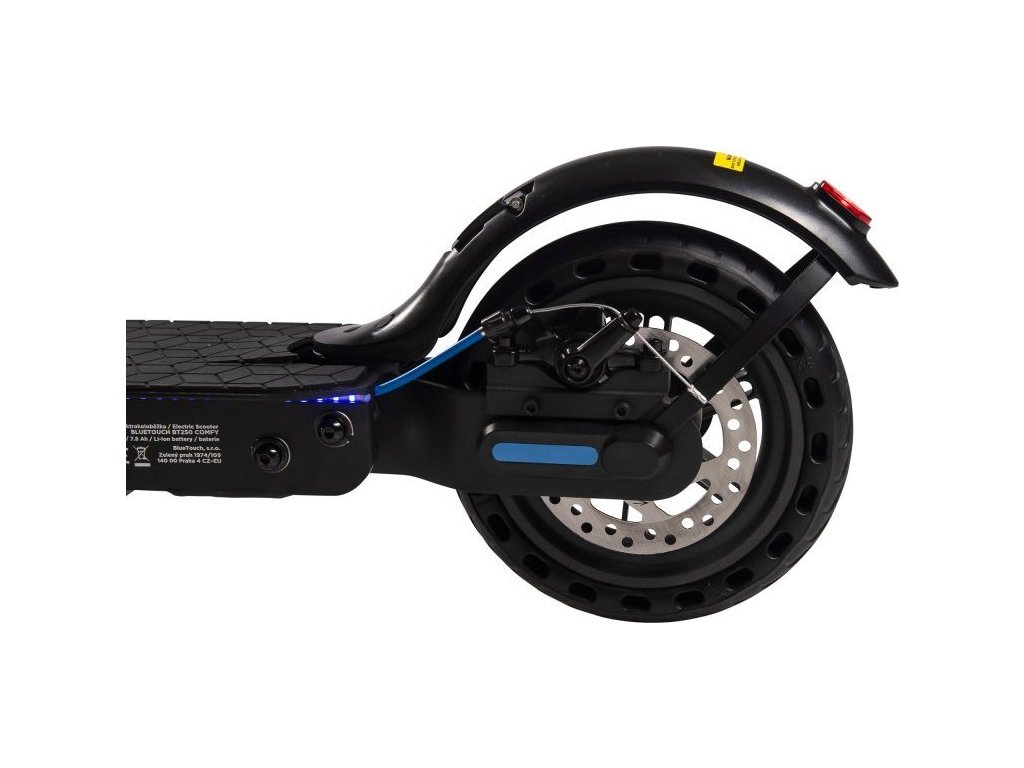 E-koloběžka BLUETOUCH BT250 COMFY disponuje plně perforovanými pneumatikami o velikosti 8,5", které nevyžadují údržbu, podporují dobrou přilnavost a zvýšenou odolnost proti poškozeni. Skládací mechanismus je praktický především pro uskladnění v interiéru. Elektrickou koloběžku BLUETOUCH BT250 COMFY snadno uložíte v pokoji nebo v kufru auta. Hmotnost pouze 14,8 kg umožní přenášení na krátkou vzdálenost nebo vynesení do schodů. Samozřejmostí je přítomnost předního a zadního LED osvětlení pro bezpečnou jízdu za slabého osvětlení nebo ve večerních hodinách.