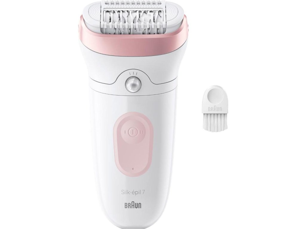 Braun Silk-épil 7, epilátor so širokou hlavicou pre jednoduché odstraňovanie chĺpkov, Wet & Dry, dlhotrvajúca hladká pokožka, 7-000, biela/plameniaková