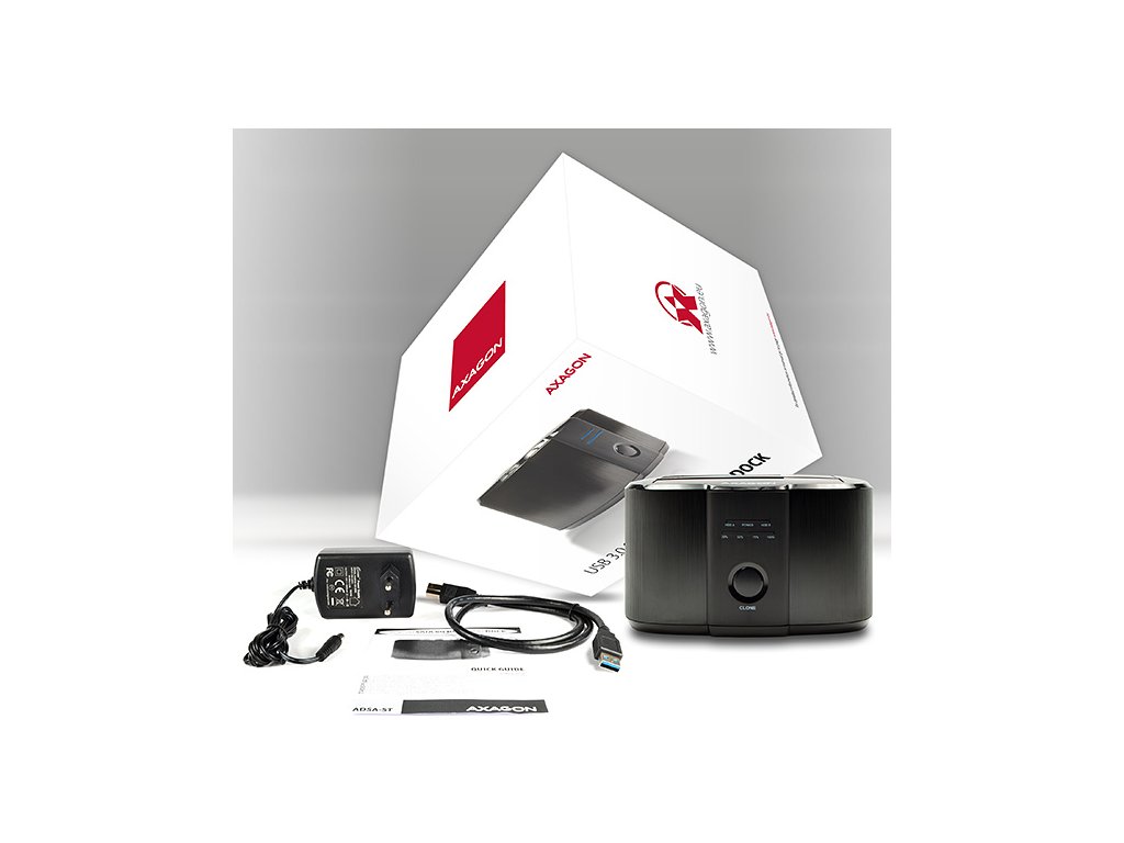 AXAGON ADSA-ST, USB 3.2 Gen 1 - 2x SATA 6G 2.5"/3.5" SSD/HDD CLONE DUAL dokovací stanice