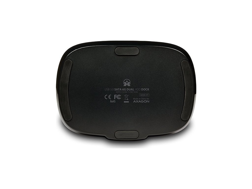 SuperSpeed USB 5 Gbps dokovací / klonovací stanice AXAGON ADSA-ST DUAL připojí k počítači snadno a rychle libovolný SATA disk nebo i dva disky současně. Připojení k počítači umožňuje USB-B konektor na doku spolu s dodávaným kabelem USB-B <-> USB-A.
