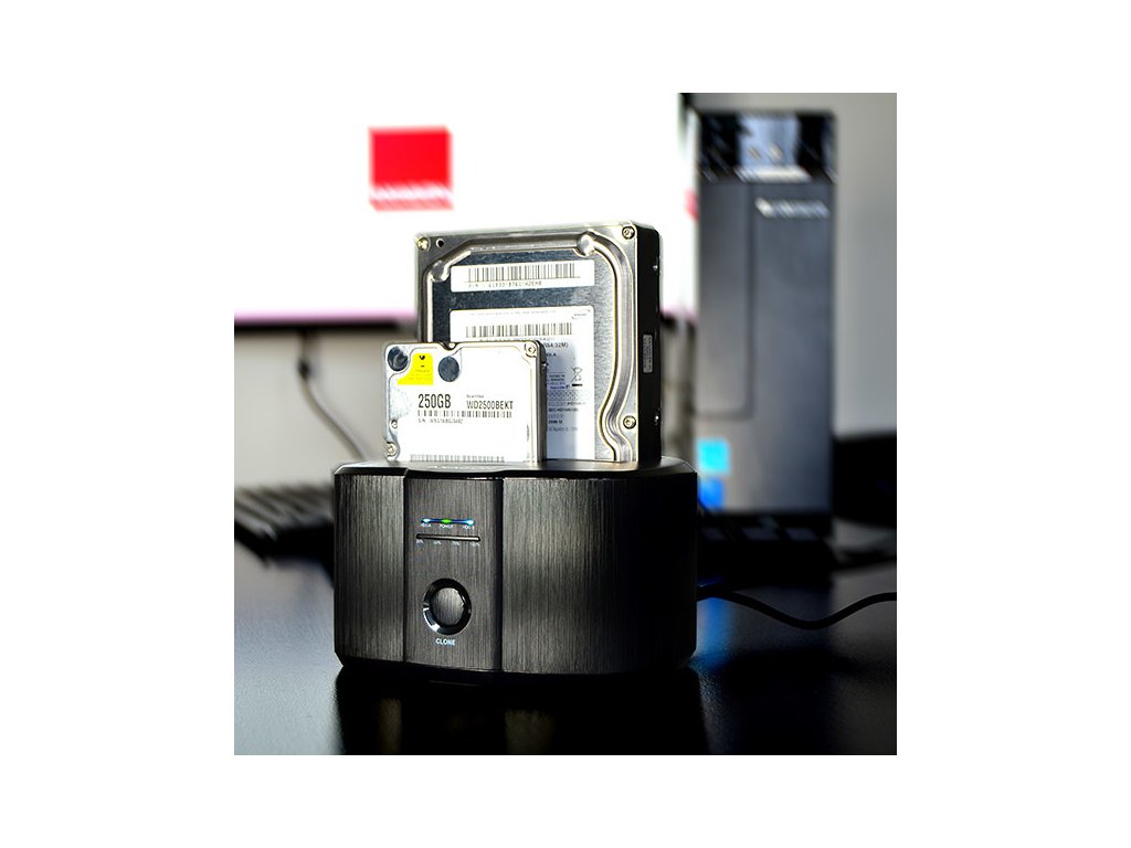 Stanice umožňuje také snadné a rychlé klonování obsahu připojených disků bez potřeby připojení k PC. HDD dock tak lze využít jako autonomní zařízení pro pohodlné duplikování a vytváření obrazů disků. Jedná se o nejjednodušší způsob, jak přenést obsah starého disku na nový SSD disk, a to včetně funkčního operačního systému (Windows, macOS, Linux …). Rychlost klonování SSD až 300 MB/s.