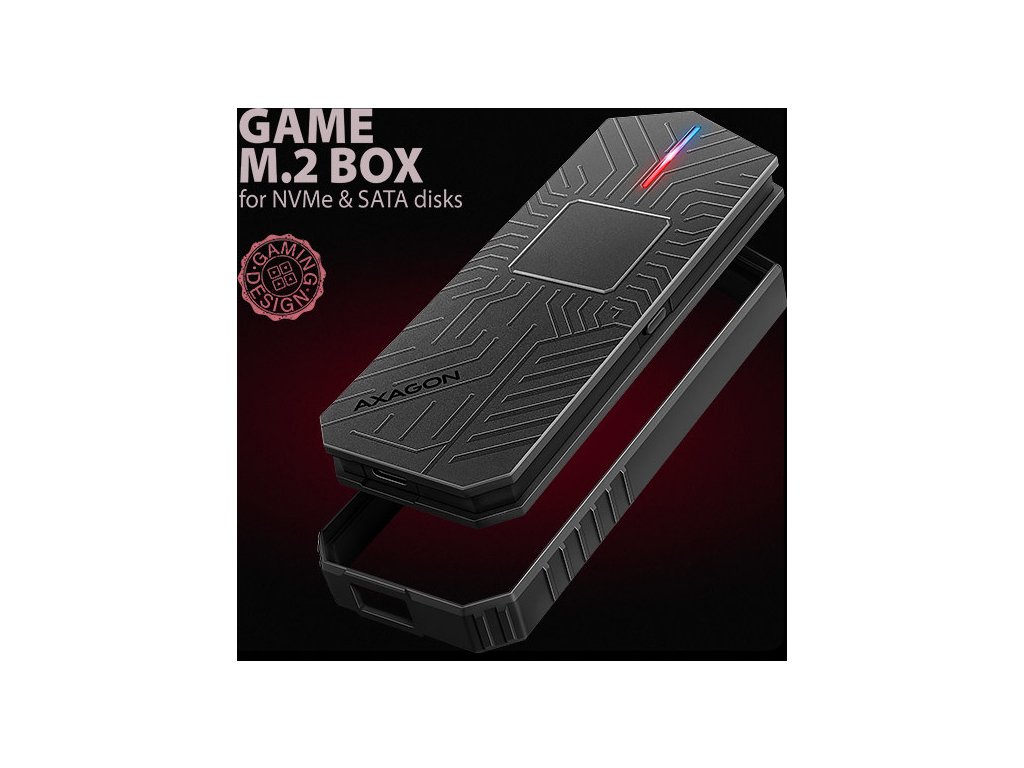 AXAGON EEM2-GAM, USB-C 10Gbps - NVMe & SATA SSD GAME M.2 box, bezšroubkový