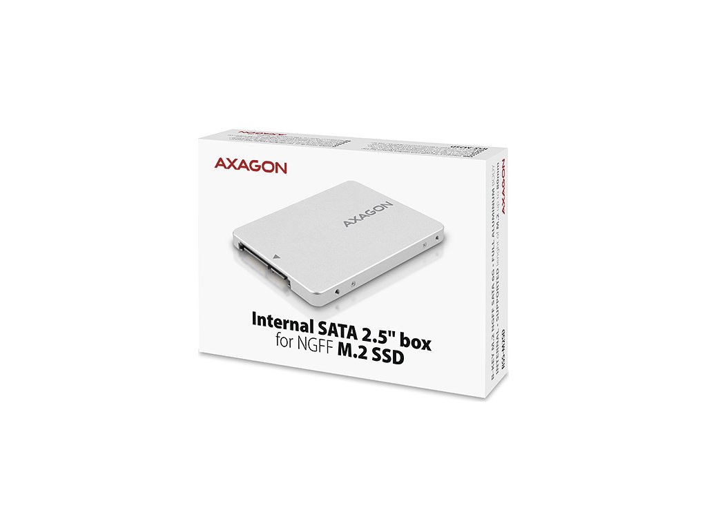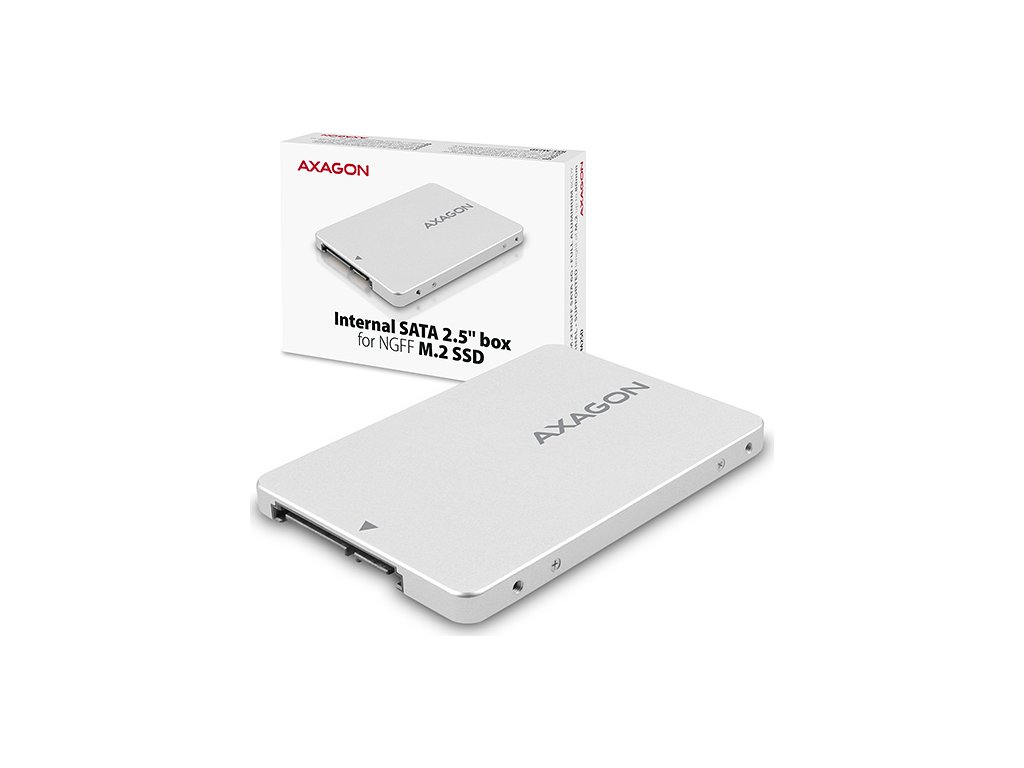 Interní 2.5" box AXAGON RSS-M2SD se SATA rozhraním je určen pro SATA M.2 SSD disky.