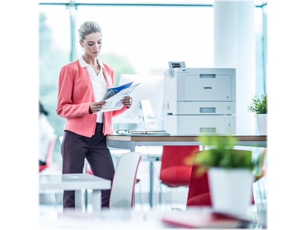 HL-L9310CDW s ostrým textem a živými barvami je profesionální barevná tiskárna navržena pro podnikové využití.