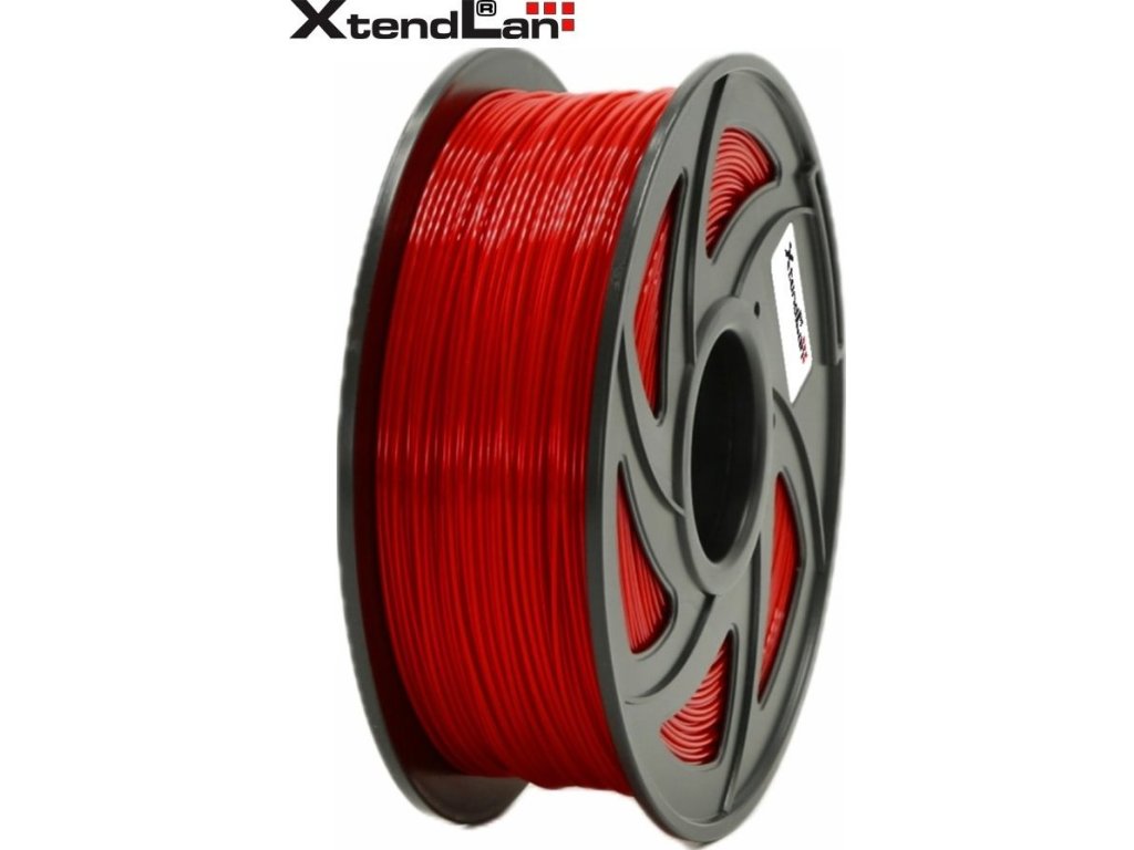XtendLAN PETG filament 1,75 mm červený 1 kgPlastové vlákno (filament) pro 3D tisk, v návinu na cívce. PET-G (PolyEtylénTereftalát Glykolem modifikovaný) je materiál velmi známý díky plastovým lahvím. PETG v sobě spojuje to nejlepší z vlastností ABS a PLA pro 3D tisk. Jde o pevný a houževnatý materiál. Odolností se materiál blíží polykarbonátům. Vyznačuje se velmi malým tepelným smrštěním a je vhodný pro tisk i velkých objektů. Má velkou odolnost proti rozpouštědlům a kyselinám. Odolává vysokým i nízkým teplotám. Při 3D tisku má velmi dobrou přilnavost k podložce. Vytištěný předmět lze tepelně leštit. Filament je chráněný vakuovým balením a v každém balení je přítomen vysoušecí sáček, který zabraňuje případnému působení vlhkosti na materiál. Dodáváno v kartónovém obalu s okénkem pro kontrolu barevnosti.