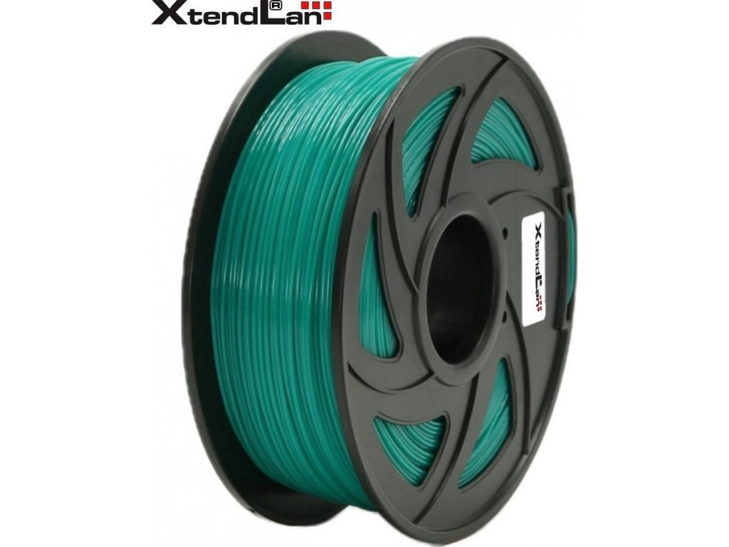 XtendLAN PETG filament 1,75 mm jadeitově zelený 1 kgPlastové vlákno (filament) pro 3D tisk, v návinu na cívce. PET-G (PolyEtylénTereftalát Glykolem modifikovaný) je materiál velmi známý díky plastovým lahvím. PETG v sobě spojuje to nejlepší z vlastností ABS a PLA pro 3D tisk. Jde o pevný a houževnatý materiál. Odolností se materiál blíží polykarbonátům. Vyznačuje se velmi malým tepelným smrštěním a je vhodný pro tisk i velkých objektů. Má velkou odolnost proti rozpouštědlům a kyselinám. Odolává vysokým i nízkým teplotám. Při 3D tisku má velmi dobrou přilnavost k podložce. Vytištěný předmět lze tepelně leštit. Filament je chráněný vakuovým balením a v každém balení je přítomen vysoušecí sáček, který zabraňuje případnému působení vlhkosti na materiál. Dodáváno v kartónovém obalu s okénkem pro kontrolu barevnosti.