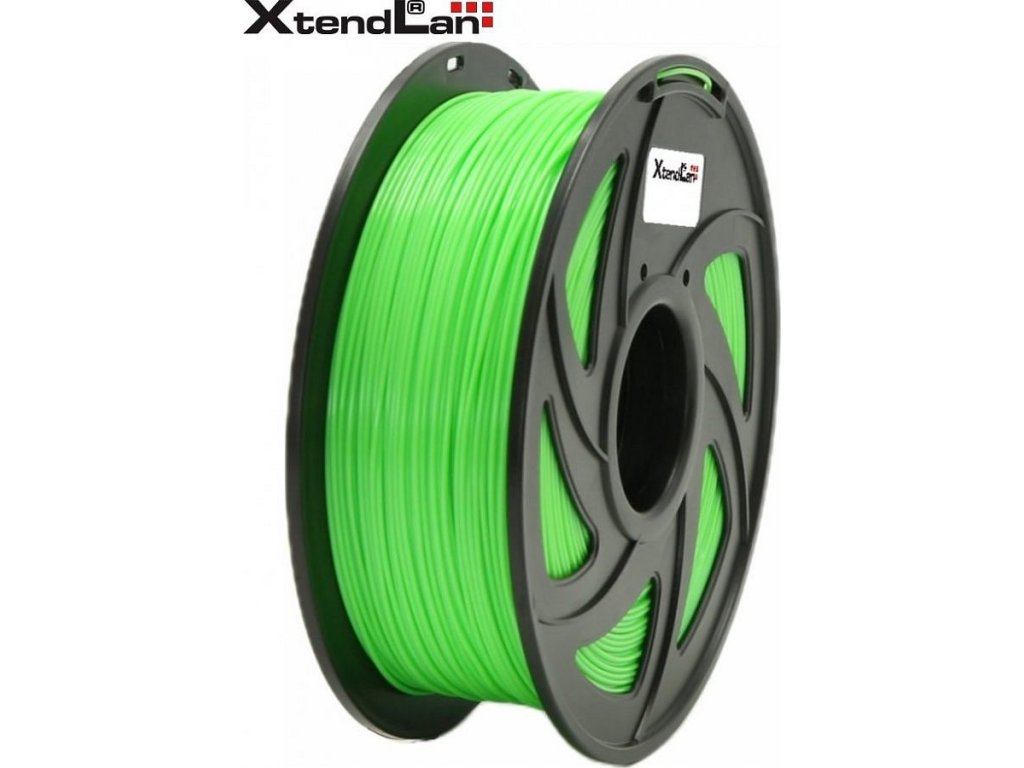 XtendLAN PETG filament 1,75 mm jasně svetle zelený 1 kgPlastové vlákno (filament) pro 3D tisk, v návinu na cívce. PET-G (PolyEtylénTereftalát Glykolem modifikovaný) je materiál velmi známý díky plastovým lahvím. PETG v sobě spojuje to nejlepší z vlastností ABS a PLA pro 3D tisk. Jde o pevný a houževnatý materiál. Odolností se materiál blíží polykarbonátům. Vyznačuje se velmi malým tepelným smrštěním a je vhodný pro tisk i velkých objektů. Má velkou odolnost proti rozpouštědlům a kyselinám. Odolává vysokým i nízkým teplotám. Při 3D tisku má velmi dobrou přilnavost k podložce. Vytištěný předmět lze tepelně leštit. Filament je chráněný vakuovým balením a v každém balení je přítomen vysoušecí sáček, který zabraňuje případnému působení vlhkosti na materiál. Dodáváno v kartónovém obalu s okénkem pro kontrolu barevnosti.