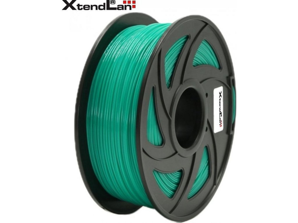 XtendLAN PETG filament 1,75 mm zelený 1 kgPlastové vlákno (filament) pro 3D tisk, v návinu na cívce. PET-G (PolyEtylénTereftalát Glykolem modifikovaný) je materiál velmi známý díky plastovým lahvím. PETG v sobě spojuje to nejlepší z vlastností ABS a PLA pro 3D tisk. Jde o pevný a houževnatý materiál. Odolností se materiál blíží polykarbonátům. Vyznačuje se velmi malým tepelným smrštěním a je vhodný pro tisk i velkých objektů. Má velkou odolnost proti rozpouštědlům a kyselinám. Odolává vysokým i nízkým teplotám. Při 3D tisku má velmi dobrou přilnavost k podložce. Vytištěný předmět lze tepelně leštit. Filament je chráněný vakuovým balením a v každém balení je přítomen vysoušecí sáček, který zabraňuje případnému působení vlhkosti na materiál. Dodáváno v kartónovém obalu s okénkem pro kontrolu barevnosti.