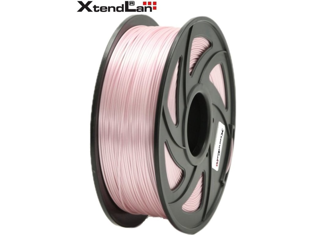 XtendLAN PLA filament 1,75 mm světle růžový 1 kgPlastové vlákno (filament) pro 3D tisk, v návinu na cívce. PLA (PoLylactic Acid, kyselina polymléčná) je nejpopulárnější 3D tiskový materiál. Především se při jeho tisku neuvolňuje nepříjemný zápach a není problémem tisk na neohřívanou podložku. Je rozměrově stabilní s velmi malým tepelným smrštěním a je vhodný pro tisk i velkých objektů. Jde o biologicky odbouratelný materiál. Není vhodný do vlhkého prostředí. Při 3D tisku má velmi vhodnou přilnavost k podložce - nepotřebuje, aby podložka byla ohřívána a zároveň lze výrobek snadno z podložky sejmout. Vytištěný předmět lze ručně brousit a lakovat. Filament je chráněný vakuovým balením a v každém balení je přítomen vysoušecí sáček, který zabraňuje případnému působení vlhkosti na materiál. Dodáváno v kartónovém obalu s okénkem pro kontrolu barevnosti.