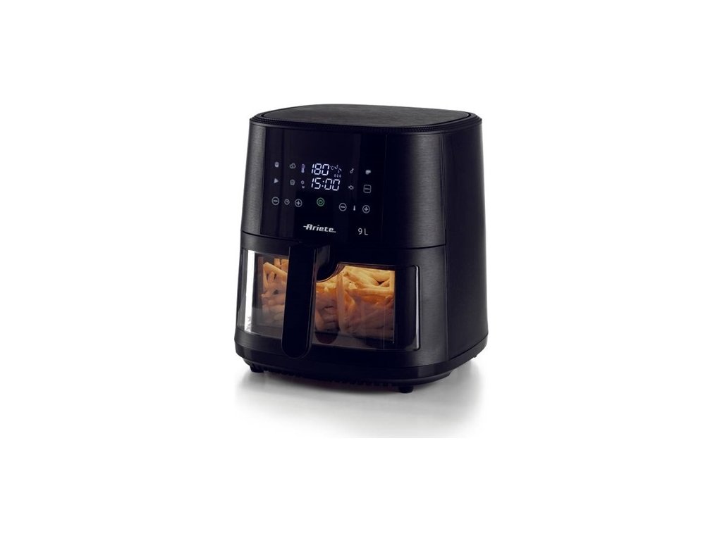 Horkovzdušná fritéza • příkon 1500 W • objem 9 l • 8 programů pečení • nastavení teploty 80–200 °C • nastavitelný časovač 60 min • digitální displej • vnitřní světlo