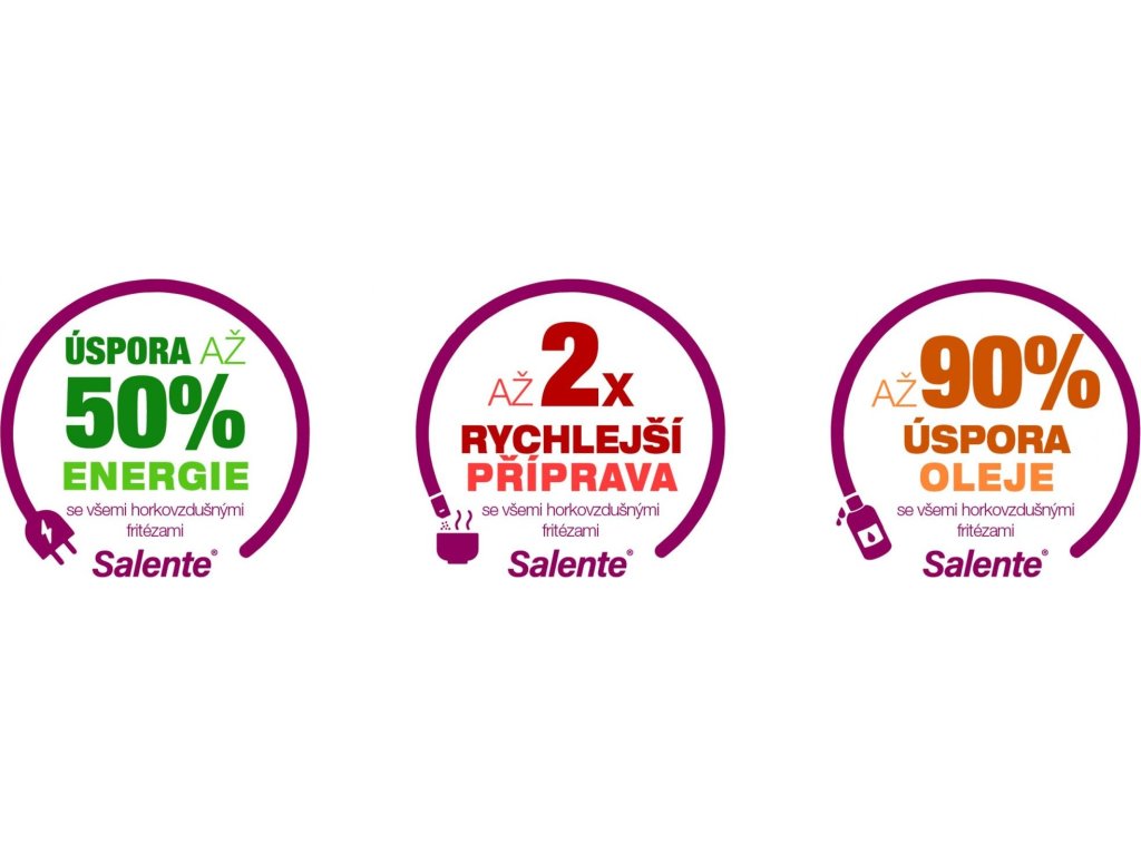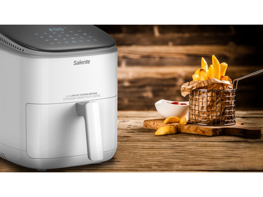 Horkovzdušná fritéza Salente AirFit splňuje současné nejvyšší nároky na zdravou a rychlou přípravu pokrmů a nabízí kombinaci hned několika způsobů přípravy od fritování a grilování, přes sušení až po rozmrazování. I těm nejnáročnějším kuchařům a kuchařkám umožňuje nastavení teploty v rozsahu 30-200 °C v krocích po 1 °C a nastavení času přípravy pokrmu v rozsahu 1-60 minut v krocích po 1 minutě.
