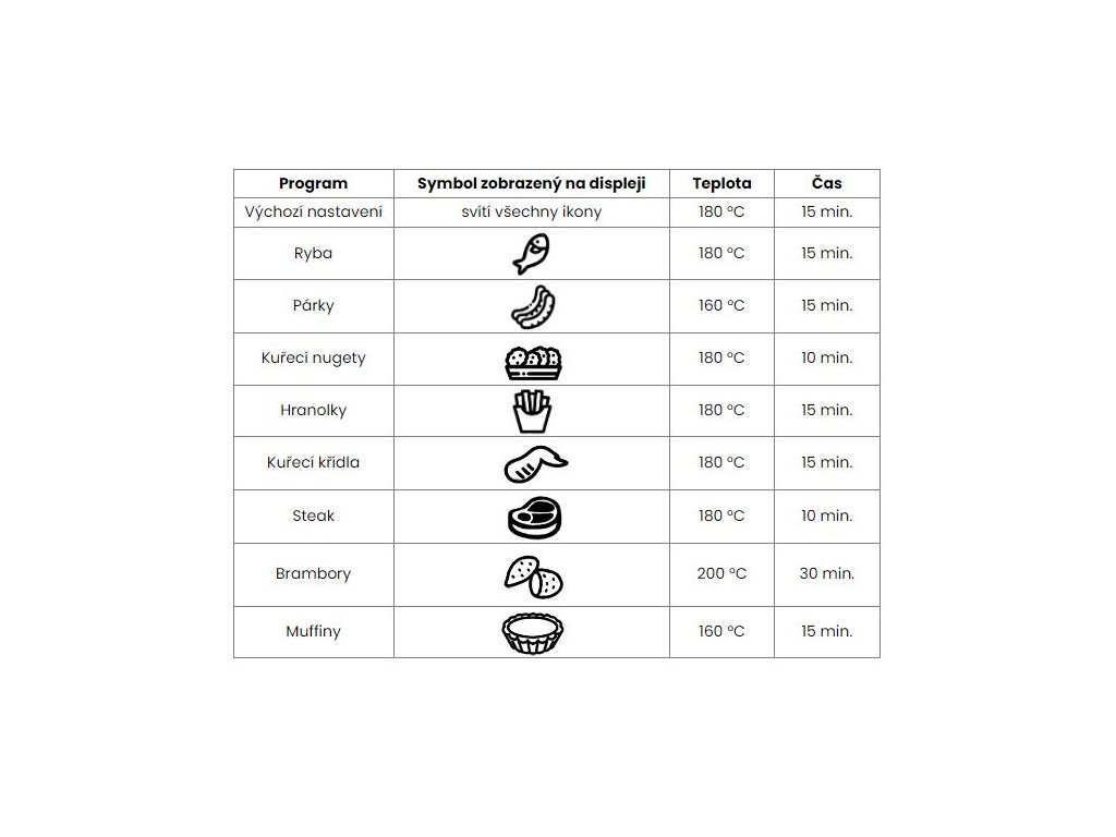 • Nastavitelná teplota 80-200 °C v krocích po 5 °C