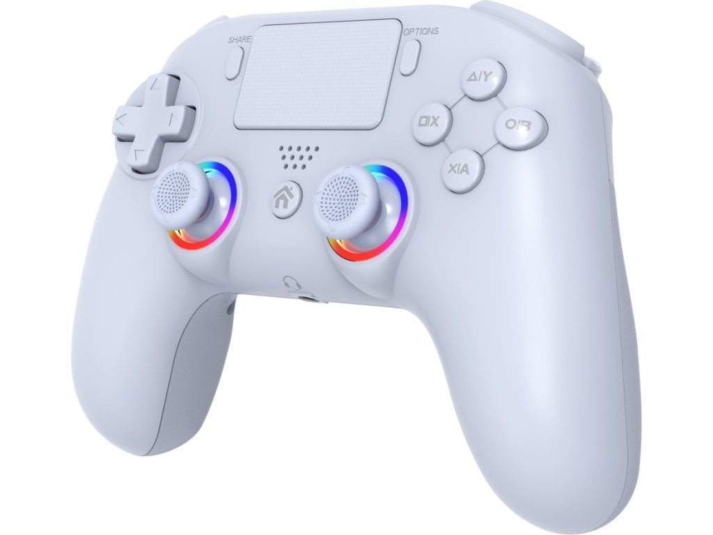 Lehký bezdrátový gamepad založený na technologii Bluetooth podporuje připojení k počítači nebo herní konzoli PS4. Díky vibracím nabízí realistický zážitek ze hry. Disponuje dvěma joysticky, směrovým D-padem a 15 tlačítky, včetně dvou programovatelných e-sports "M" tlačítek na spodní straně, se kterými budete mít všechny herní funkce vždy na dosah ruky. Jedinečný design ovladače skvěle doplňuje nastavitelné RGB podsvícení. K dispozici je navíc také 3,5 mm jack konektor pro připojení sluchátek. Napájení zajišťuje integrovaná baterie, její dobíjení pak přiložený nabíjecí kabel.