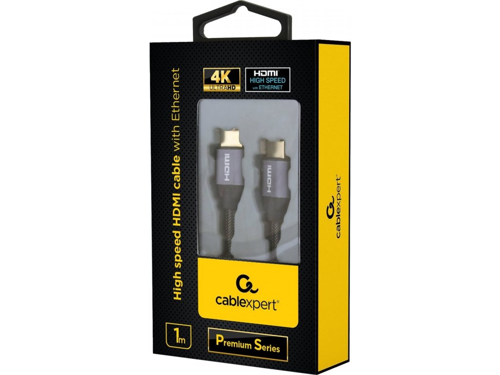 Kábel HDMI CABLEXPERT 2.0, 1m, opletený, čierny, ethernet, blister