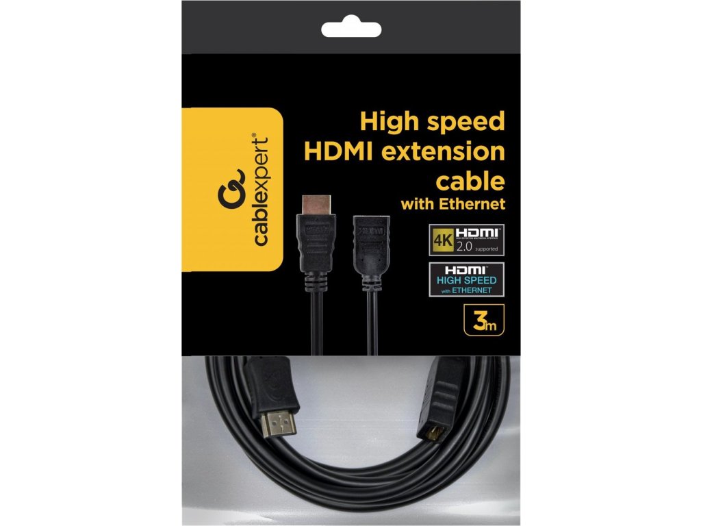 GEMBIRD Kabel HDMI-HDMI 3m, 1.4, M/F stíněný, zlacené kontakty, prodlužovací, černý