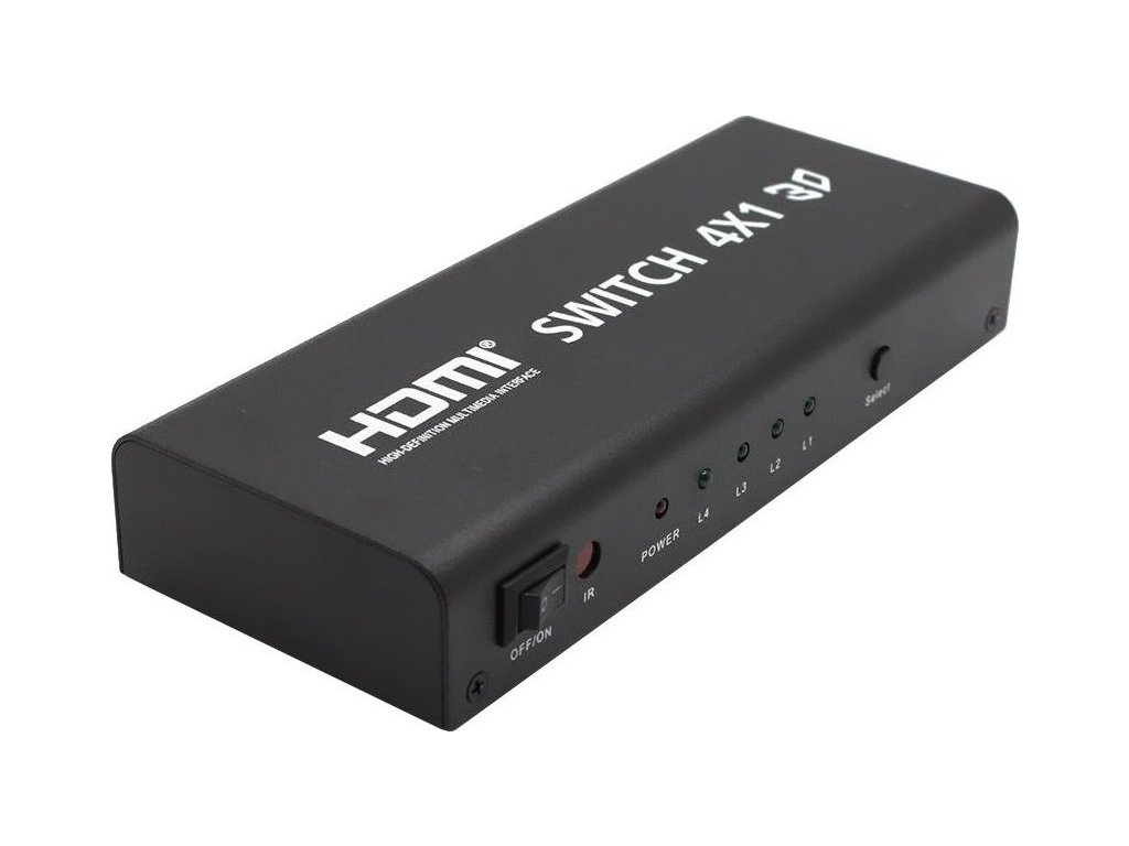 4 HDMI zařízení sdílí 1 HDMI výstupní zařízení (obrazovku). Výběr zařízení tlačítkem nebo dálkovým ovládáním.