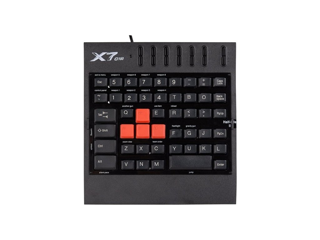 Netradičně zpracovaná herní klávesnice určená pro počítačové hráče. Disponuje čtyřmi zvětšenými tlačítky pro snadnější a preciznější ovládání pohybu postavy ve hře. Hojně využívané klávesy ve hrách jsou zde sjednoceny do skupin, což Vám umožní celkově jednodušší a rychlejší ovládání her. Navíc jsou klávesy blízko u sebe, díky tomu je již nebudete dlouho hledat po celé klávesnici. Celý design a rozložení kláves je navrženo tak, že v drtivě většině her nebudete potřebovat klasickou klávesnici a pohodlně vystačíte jen s A4Tech G100 a myší. Nechybí ani tlačítka na ovládání zvuku.