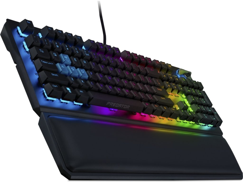 Blue/Red spínače, přepínání mezi Tactile a Linear stiskem, RGB LED podsvícení se 4 úrovněmi, multimediální klávesy a ovládání hlasitosti, životnost 60mil. stisknutí, USB konektor, 1,8m kabel, US popisy