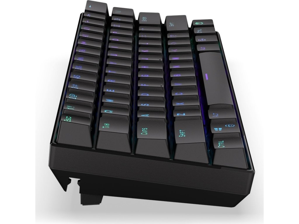 Malý formát a pevné pancéřové pouzdro bez zbytečných kabelů. Navíc krytky PBT Double Shot, pod nimiž na akci čekají spínače Kailh Box Brown se zesílenými šachtami.