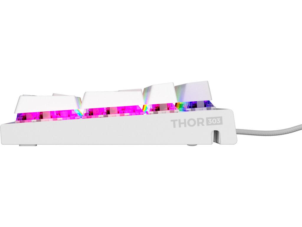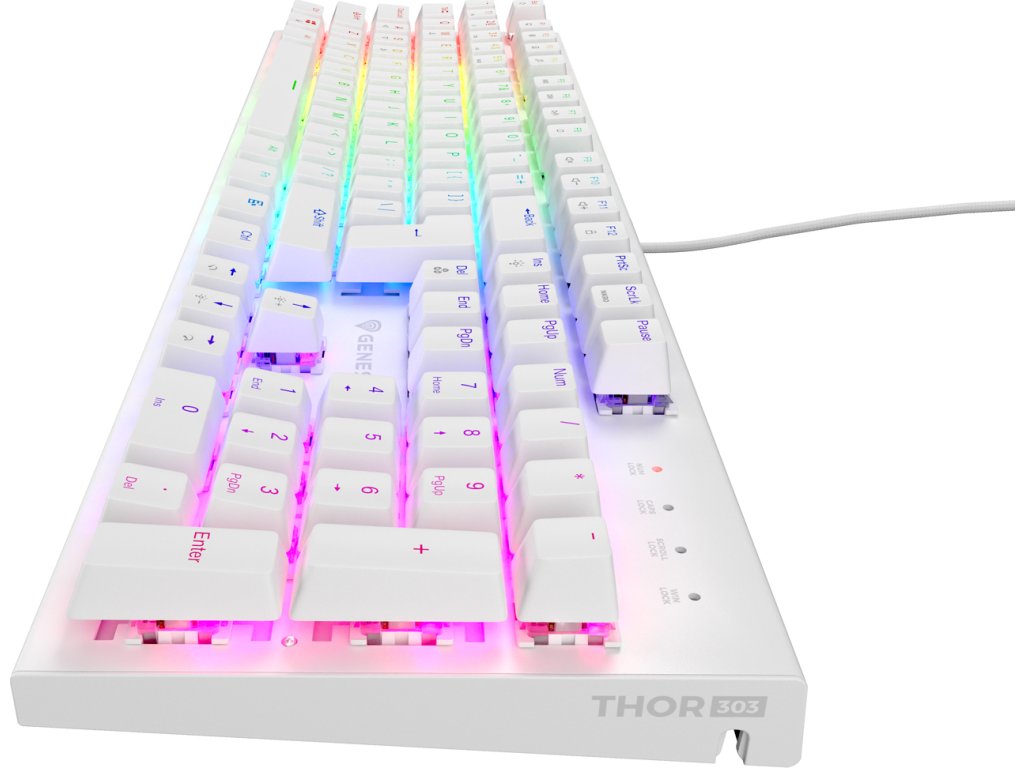 Genesis THOR 303 je mechanická klávesnice s výměnnými spínači Outemu Brown s extrémně rychlou odezvou a životností až 50 milionů kliknutí. Odolné hliníkové šasi v kombinaci s plnohodnotným RGB osvětlením včetně PRISMO efektu zaručí odolnost konstrukce a efektní vzhled během každé herní relace.