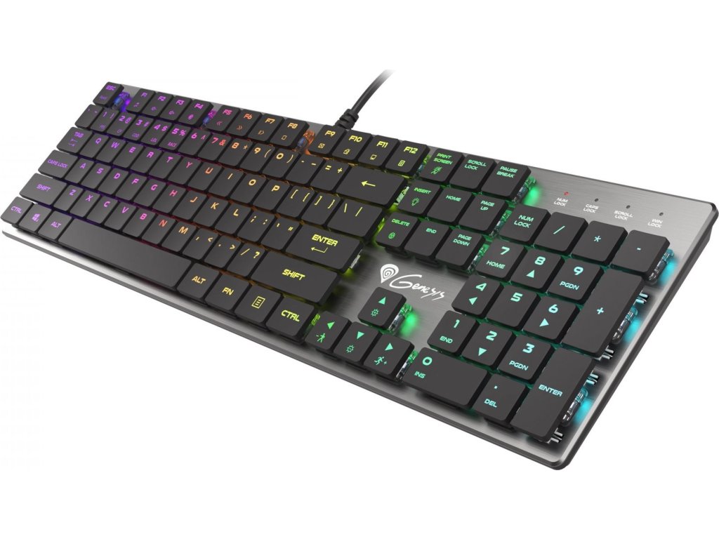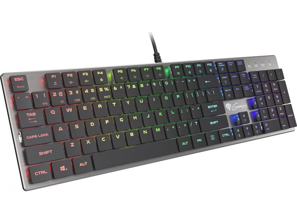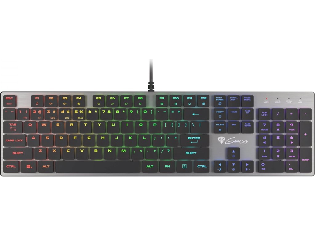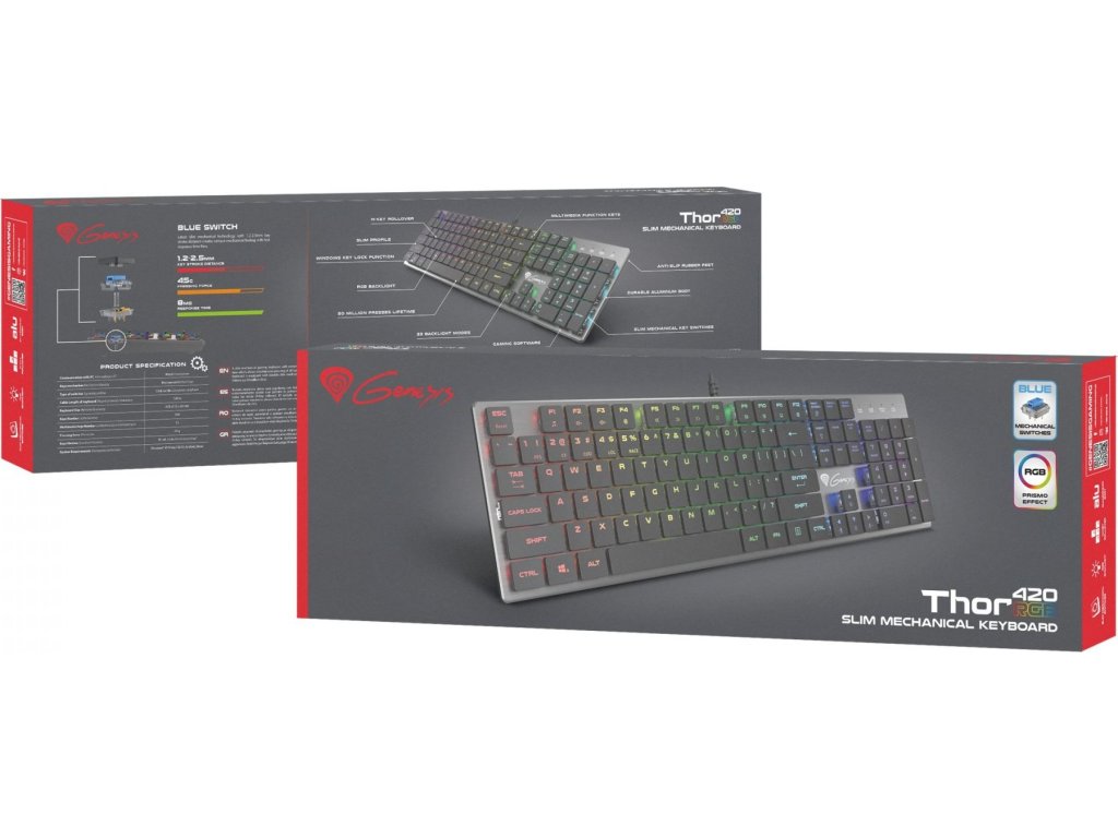 Genesis Thor 420 RGB je plochá mechanická klávesnice určená pro náročné uživatele, kteří ocení její pokročilé funkce, ale také stylový design. Srdcem Thor 420 RGB jsou ploché mechanické spínače z velmi krátkým aktivačním bodem pouze 1,2mm, což umožňuje bleskurychlou reakci s maximální efektivností. Klávesnice je vybavena softwarem, díky kterému můžete nahrávat libovolné makra a spravovat 22 režimů podsvícení. Kvalitní zpracování, hliníkové tělo a mechanické spínače z životností 50 milionů kliknutí jsou zárukou odolnosti a spolehlivosti.