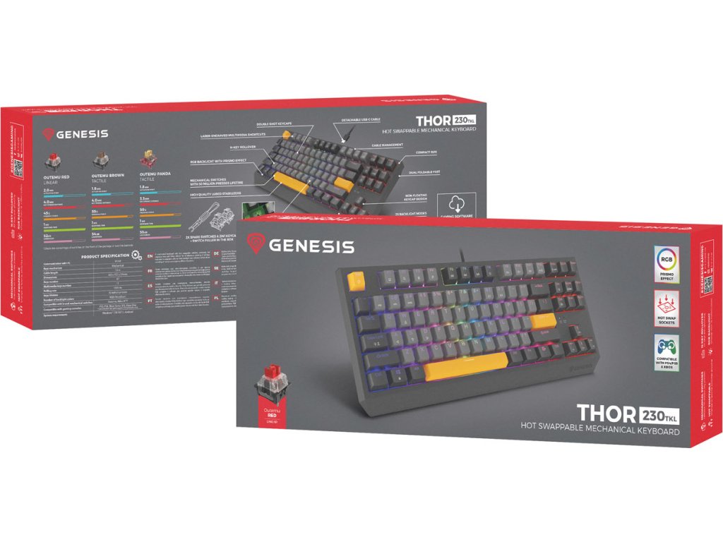 | Značka a model: | Genesis herní klávesnice THOR 230/TKL/RGB/Outemu Red |
