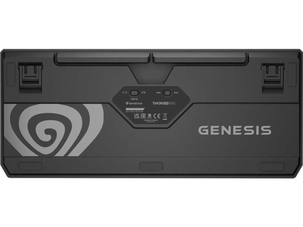 U klávesnice GENESIS Thor 230 TKL Wireless není nic náhodné. Kromě výše zmíněných vymožeností vám tento model nabídne řadu řešení, která vám hraní ještě více zpříjemní. Speciální kanál pro položení opleteného kabelu v libovolném ze 3 směrů, dvojité sklopné nožičky pro snadné nastavení náklonu ve 2 úrovních, funkce, která umožňuje aktivovat funkční klávesy bez použití "FN" - a to je jen malá část.