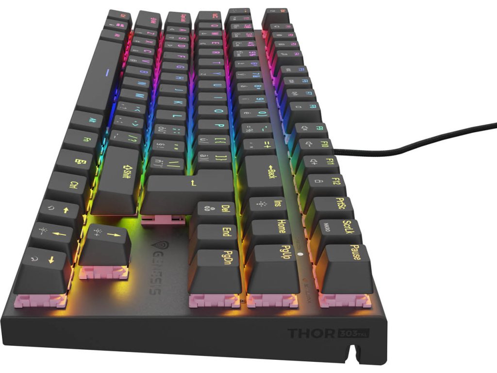 Klávesy Genesis Thor 303 TKL mají životnost až 50 milionů kliknutí. Mechanismus kláves v kombinaci s technikou "Double Injection" a pevným hliníkovým krytem znamená, že klávesnice zůstane neporušená po dlouhá léta. Počítat můžete také s mnoha dalšími funkcemi, jako je N-Key Rollover (plný Anti-Ghosting), možnost uzamknout klávesy Windows a dokonce i pokročilé světelné efekty RGB Prismo Effect.