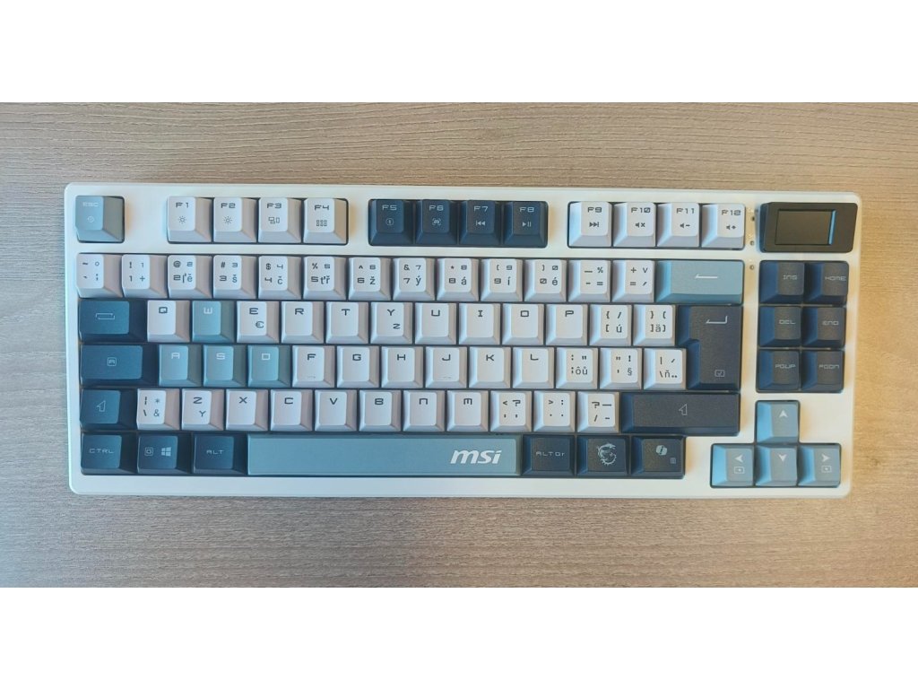 MSI herní klávesnice FORGE GK600 TKL Sky/ bezdrátová 2,4GHz+BT/ mechanická/ RGB/ USB-C/ display/ CZ+SK layout