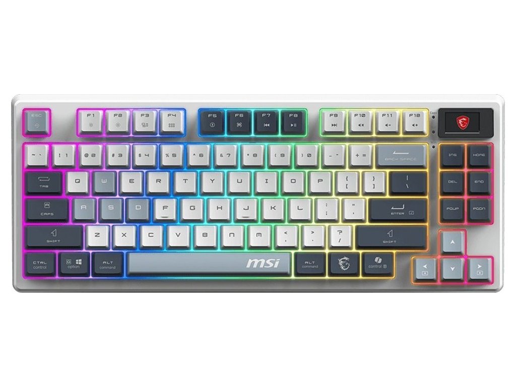 MSI herní klávesnice FORGE GK600 TKL Sky/ bezdrátová 2,4GHz+BT/ mechanická/ RGB/ USB-C/ display/ US layout