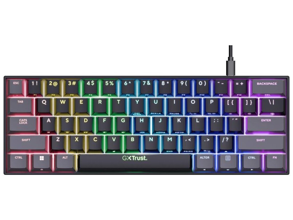 TRUST klávesnice GXT 867 ACIRA, 60%, Herní Klávesnice, USB, USB-C, US