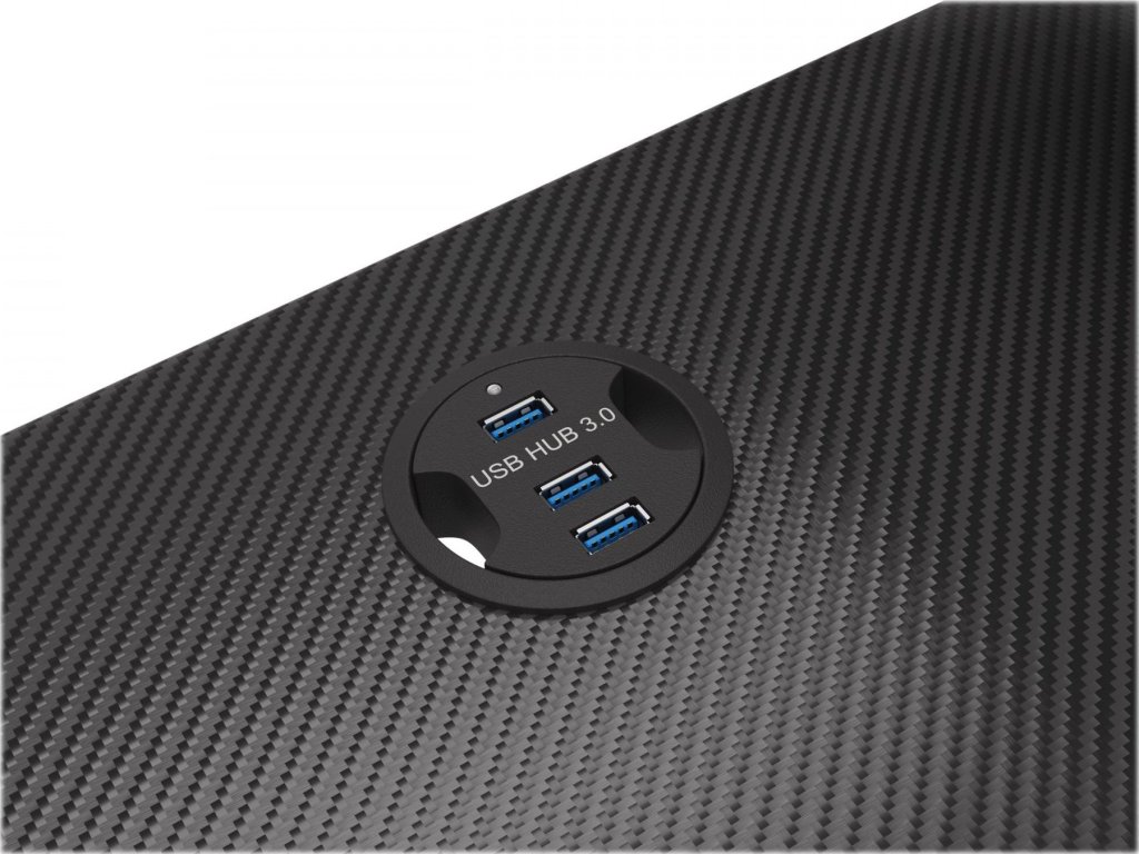 Stůl Holm 300 RGB obsahuje hned několik praktických řešení, která jsou promyšleně zakomponované do desky stolu. Jedním z nich je integrovaný rozbočovač se třemi porty USB 3.0, jakož i integrovaná bezdrátová nabíječka pro indukční nabíjení mobilních zařízení.