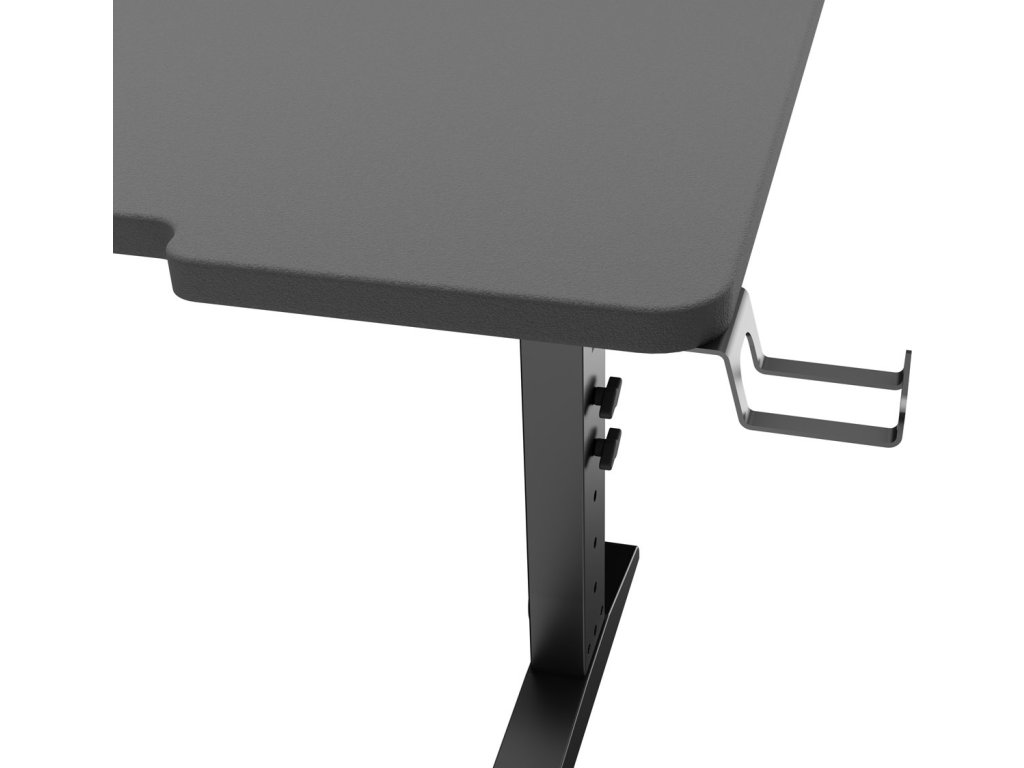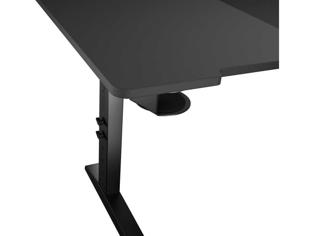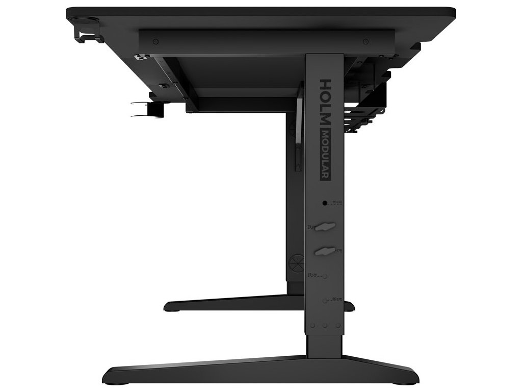 Nemusíte se obávat ani jeho výšky. Již ve fázi montáže si můžete vybrat z 5 úrovní, čímž určíte polohu stolové desky v rozmezí 70 až 90 cm. Můžete si ji tak snadno přizpůsobit své výšce, díky čemuž je stůl GENESIS Holm Modular plně ergonomický. Nastavitelná je také speciální police na kabely. Můžete ji prodloužit v rozmezí 50 až 95 cm, a přizpůsobit ji tak rozměrům celé stolové desky. Díky její hloubce se do ní snadno vejdou i velké přepěťové lišty.