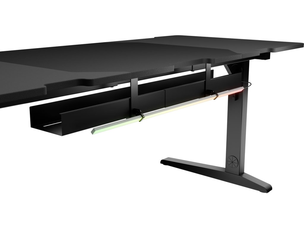 - Pod stolem je expanzivní kabelová přihrádka určená pro velké napájecí lišty.