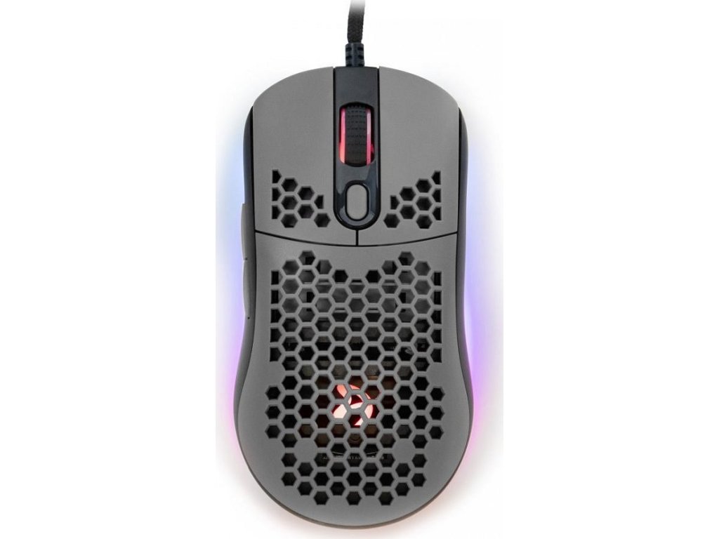 Ultralehká herní myš disponující 7 programovatelnými tlačítky a vysoce přesným optickým senzorem Pixart 3389 s rozlišením až 16000 DPI. Kryt v designu plástve snižuje celkovou hmotnost, zlepšuje odvod tepla, a tím zajistí i pevnější uchopení myši. Herní design poté doplňuje nastavitelné RGB podsvícení. Kvalitní spínače Omron vydrží více než 20 milionů kliknutí. Připojení je realizováno skrze opletený USB kabel.