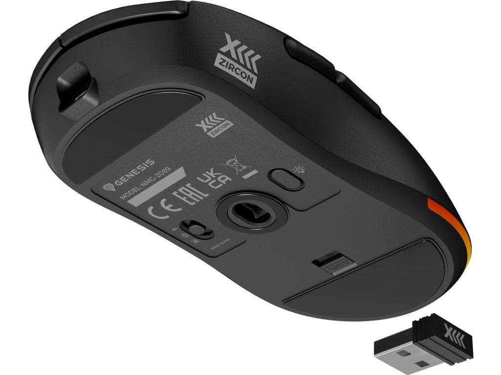 Nezapomněli jsme ani na další funkce, díky kterým bude používání GENESIS Zircon XIII rychlé a snadné. Posuvník umístěný ve spodní části vám umožní přepínat mezi drátovým režimem, bezdrátovým režimem a vypnout podsvícení. Speciální tlačítko vám zase umožní změnit režim podsvícení. V kombinaci s vestavěnou pamětí a pokročilým softwarem tak získáte téměř neomezené možnosti a svobodu používání.