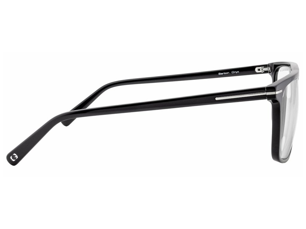 Model Barton z kolekce Trace představuje moderní obdélníkový rám vyrobený z prémiového acetátu v barevném provedení Onyx. Design spojuje jemný retro nádech s pokročilou ochranou očí díky čirým čočkám GUNNAR Focus, které poskytují optimální ochranu proti digitálnímu namáhání očí a expozici modrému světlu bez výrazného zbarvení.