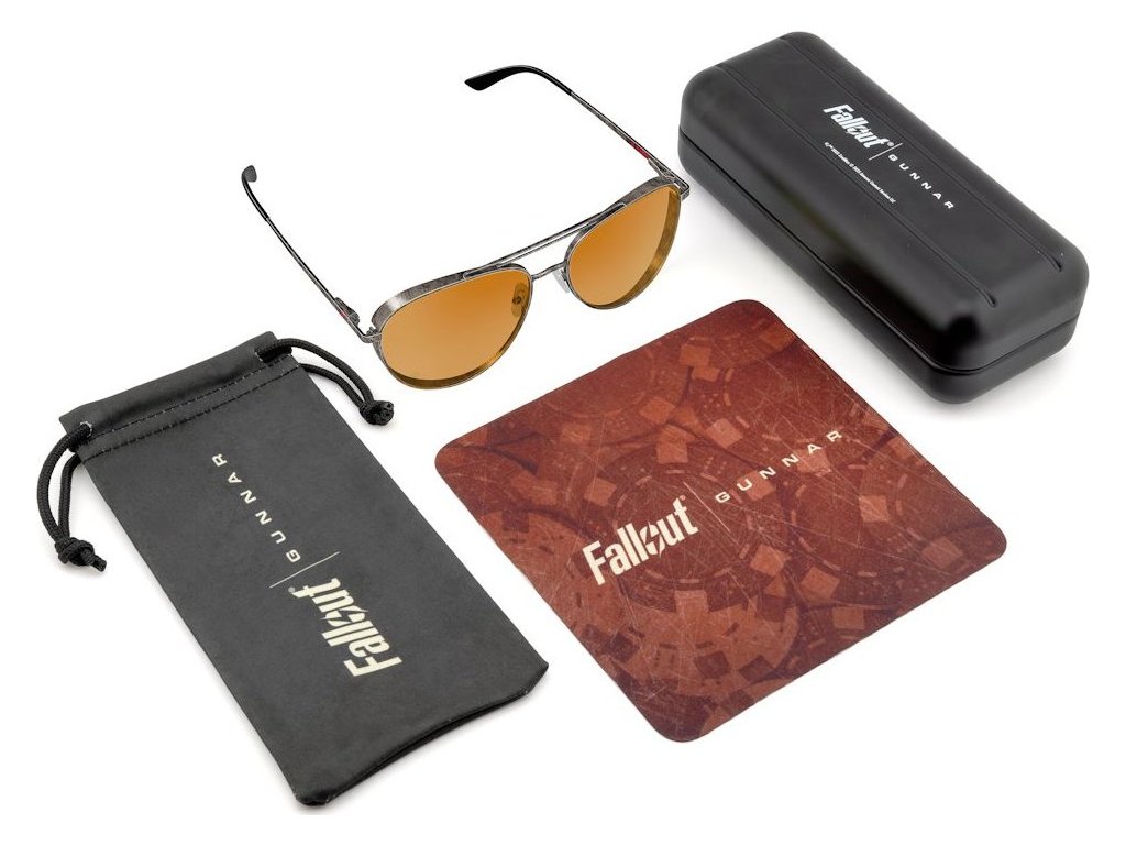 Každé brýle jsou dodávány s kolekcí exkluzivního příslušenství včetně kovového pouzdra „Area 51“, mikrovláknového pouzdra s motivy Brotherhood a čisticího hadříku s designem Fallout.