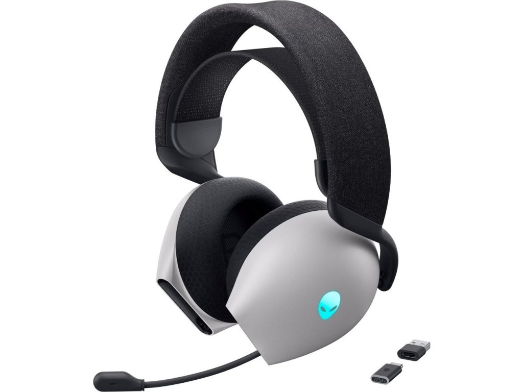 Herní náhlavní headset poskytující bohatý a čistý zvuk díky 40mm Hi-Res měničům a prostorovému zvuku Dolby Atmos. Stejně tak výsuvný mikrofon poskytuje křišťálově čistý přenos s AI potlačením šumu, který je základem kvalitní hlasové komunikace. Měkké náušníky z paměťové pěny s prodyšným látkovým potahem a nastavitelný hlavový most zajistí dlouhé hodiny hraní či poslechu v nejvyšším komfortu. Zajisté potěší také nastavitelné podsvícení AlienFX ve škále až 16,8 milionů barev, tlačítko pro ztlumení mikrofonu či kolečko pro nastavení hlasitosti umístěné přímo na sluchátkách. Připojení k počítači lze realizovat hned třemi způsoby: skrze Bluetooth, USB-C adaptér a bezdrátovou technologii 2,4 GHz nebo konektor 3,5 mm jack. Vestavěná baterie zajistí až 75 hodin provozu.