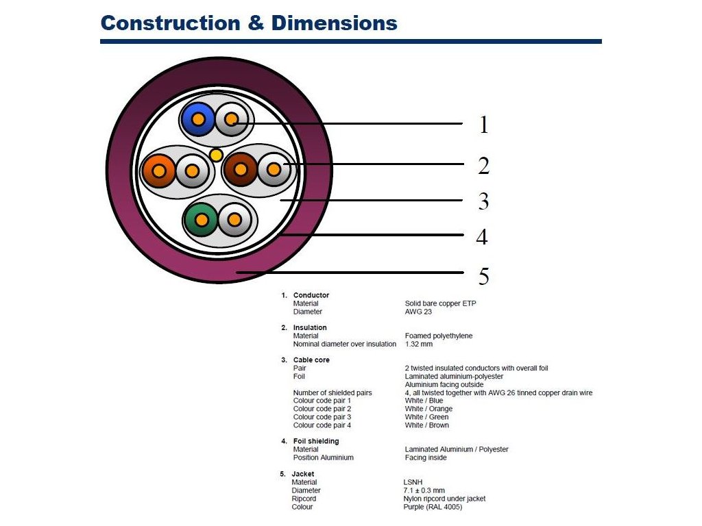BELDEN F/FTP Cat.6A LSOH, plášť fialový