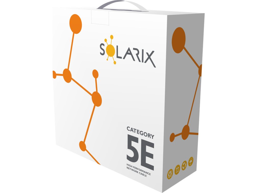 Instalační kabel Solarix s označením SXKD-5E-FTP-PE je spolehlivý venkovní stíněný kabel kategorie 5E, který je určený pro provoz ethernetových protokolů, včetně 2.5GBASE-T a 5GBASE-T*. Konstrukce kabelu je F/UTP, typ pláště UV stabilní PE s třídou reakce na oheň Fca a stupněm krytí IP67. Vodiče kabelu jsou vyrobeny z kvalitního měděného drátu s čistotou mědi 99,97 %. Kabel bez problémů splňuje požadavky z mezinárodních standardů ISO/IEC 11801, EN 50173 a ANSI/TIA 568.2-D. Stejně jako ostatní kabely Solarix, je i kabel SXKD-5E-FTP-PE značen metráží po 1 m v rozsahu od 0 do 100 m. Kabel je dodáván ve vysoce odolném třívrstvém leštěném kartónovém boxu (vždy barevně odlišeném podle typu kabelu), na kterém jsou uvedeny všechny nezbytné produktové informace, včetně čárových kódů, výrobní šarže, popisu a nejdůležitějších technických parametrů. Tento kabel není určen pro trvalé uložení do vody ani do země bez odpovídající řádné ochrany.