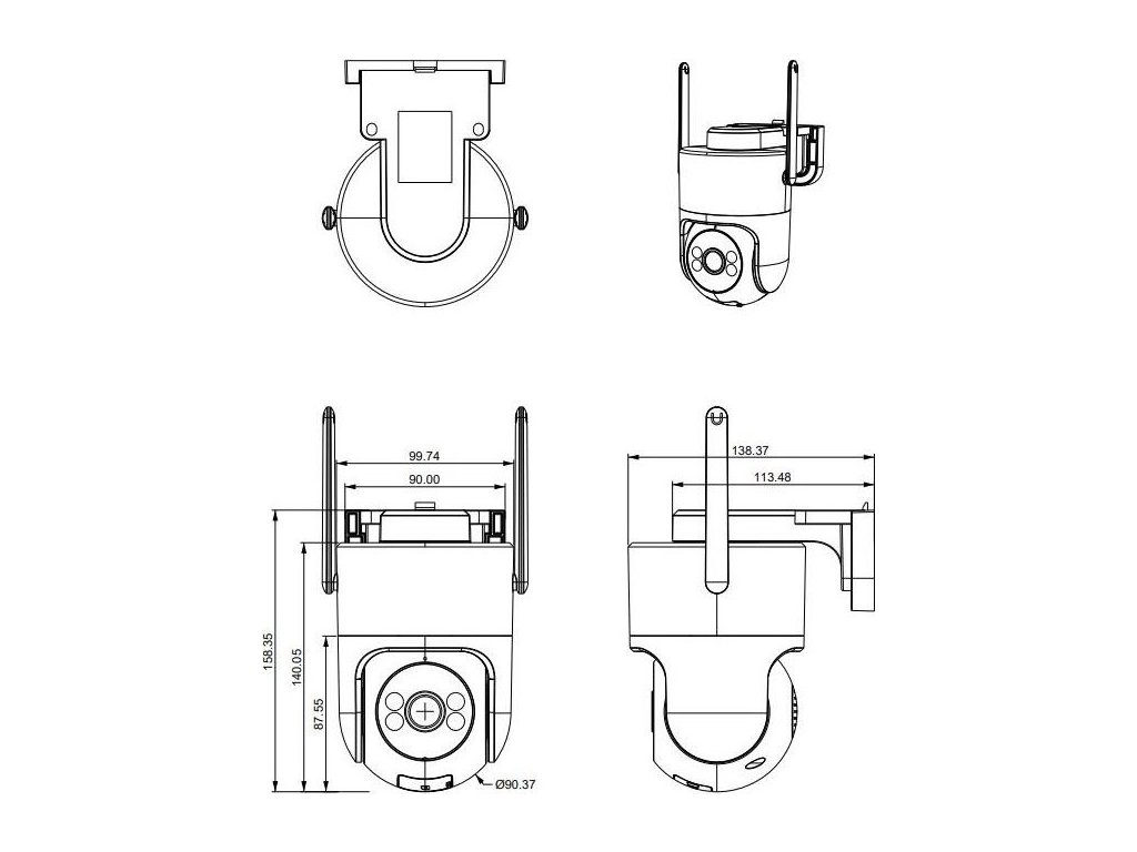 - PT mechanizmus s rozsahem 355° (otáčení) a 90° (náklon) pro pokrytí celého prostoru