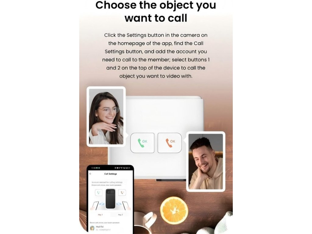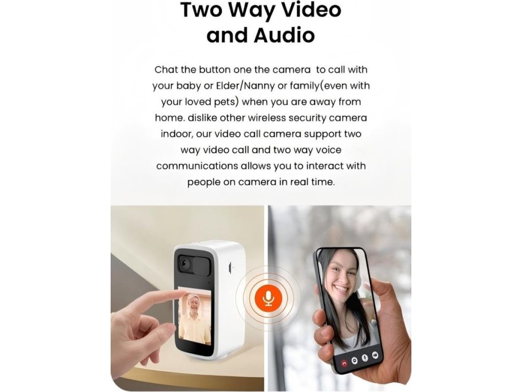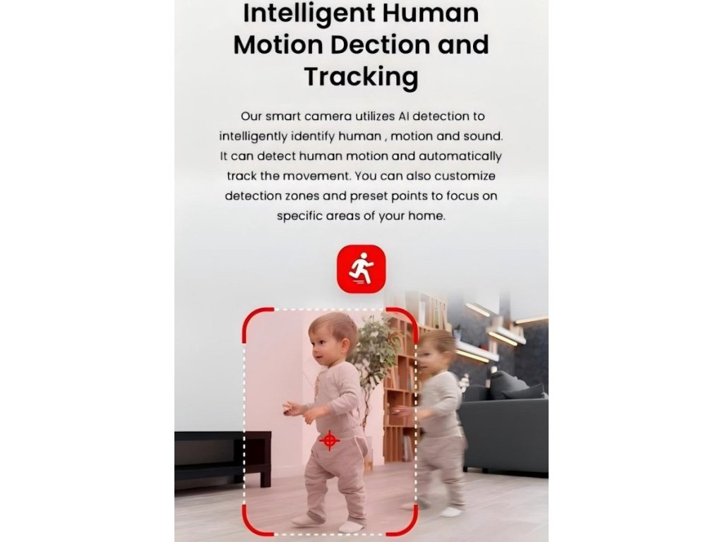 Pokročilá AI detekce rozpozná osoby, zvířata, vozidla i další objekty a okamžitě odešle push oznámení na váš telefon během 1–2 sekund. Kamera podporuje obousměrnou zvukovou komunikaci, takže můžete komunikovat s osobami v místnosti, a nabízí také funkci přímého volání z aplikace. Pro noční monitorování je vybavena IR přísvitem s dosahem až 5 m a automatickým přepínáním IR-CUT filtru.