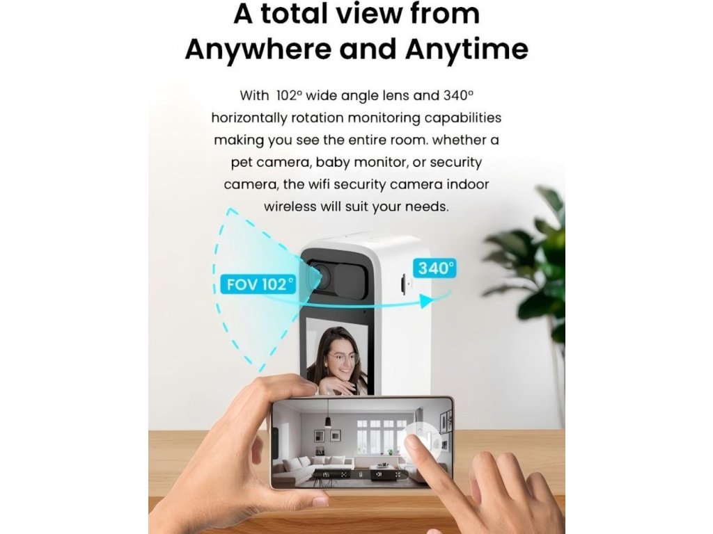 Moderní interiérová Wi-Fi kamera s 2,8" barevným displejem a pokročilou AI detekcí pro komplexní monitorování domácnosti.