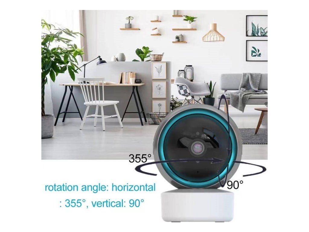 Chytrá vnitřní bezpečnostní kamera s detekcí pohybu disponuje otočným mechanismem pro monitorování v zorném úhlu 360°. Snímač nabízí rozlišení 5 Mpx a je schopný snímat video v rozlišení 2560 × 1920 bodů. Pro případ zhoršených světelných podmínek je přítomen IR přísvit do vzdálenosti až 5 m. Součástí kamery je integrovaný reproduktor a mikrofon, který umožní kvalitní oboustrannou komunikaci. Připojení lze jednoduše realizovat bezdrátově skrze Wi-Fi. Propojení kamery pomocí aplikace v mobilním zařízení umožní pohodlný vzdálený přístup, ovládání kamery, pořizování záznamů či fotografií. Natočené záznamy je možné ukládat i na microSD kartu do kapacity až 128 GB.