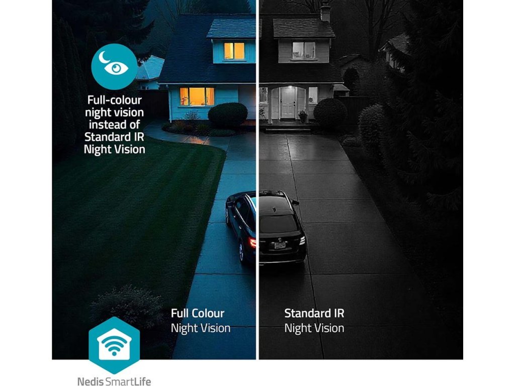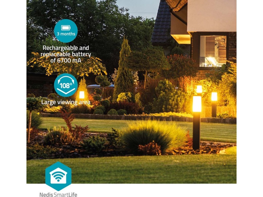 Kamera se ovládá přes aplikaci Nedis SmartLife dostupnou pro Android™ i iOS. Aplikace umožňuje sledování živého obrazu, přehrávání záznamů, nastavení detekce pohybu a vzdálené ovládání reflektoru i sirény. Kamera podporuje programování časových harmonogramů a automatizací. Funkce více uživatelů umožňuje sdílení přístupu s rodinou.
