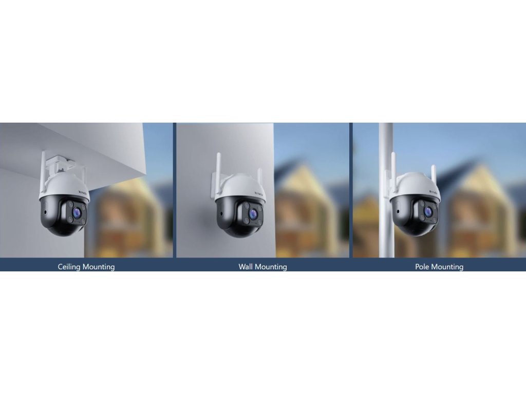 Venkovní otočná IP kamera s online sledováním pomocí mobilního telefonu a tabletu. Ukládání záznamů a fotografií na microSD kartu nebo Cloud. Rozlišení FullHD pro video ve vysoké kvalitě, denní i noční provoz díky IR dosvitu až 30 m, ohnisková vzdálenost 4,0 mm, Wi-Fi b/g/n, 1x LAN RJ45 10/100 Mb/s, mikrofon a reproduktor, slot pro microSD kartu s velikostí až 128 GB. Úhel záběru 360° horizontálně a 90° vertikálně. Kamera podporuje detekci pohybu, detekci osoby, a automatické otáčení za pohybem/osobou. Součástí balení je držák na stěnu/strop.