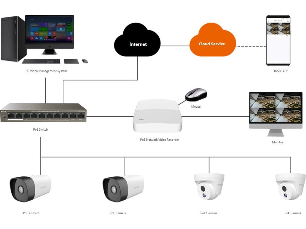 S univerzálními kamerami Tenda jednoduchým způsobem vytvoříte kamerové zabezpečení pro dům, chatu, firmu, sklad, obchod apod. Připojení kamery do sítě pomocí Ethernetového kabelu je možné ji napájet pomocí PoE nebo pomocí DC napájení. Díky OnViF protokolu je možné kameru připojit k jakémukoliv rekordéru , NAS úložišti atd. které podporují OnViF. Navíc je možné samostatné použití kamery, stačí ji připojit pomocí kabelu do sítě a připojit napájení, poté oskenovat kód na kameře do aplikace.